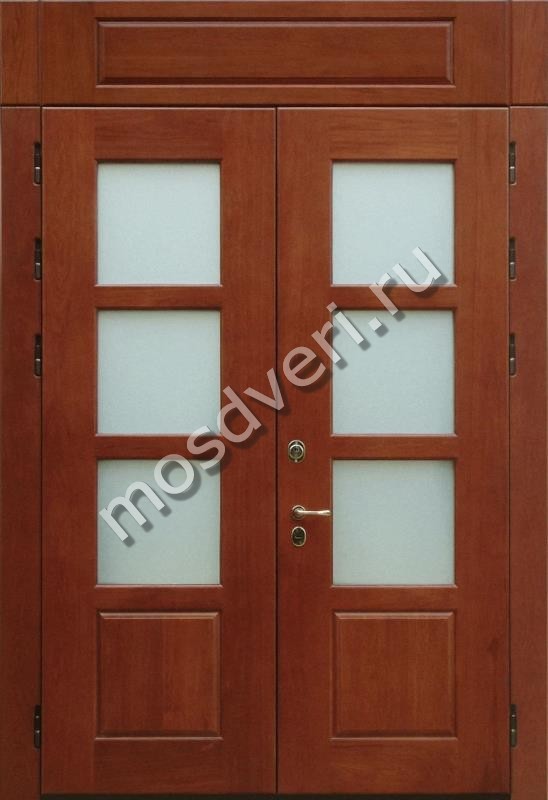 Входная двустворчатая дверь из массива дуба со стеклом в Кирове
