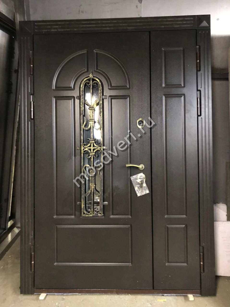 Элитная входная дверь полуторная с ковкой и стеклом — сочетает в себе стильный внешний вид и максимальную защиту.
