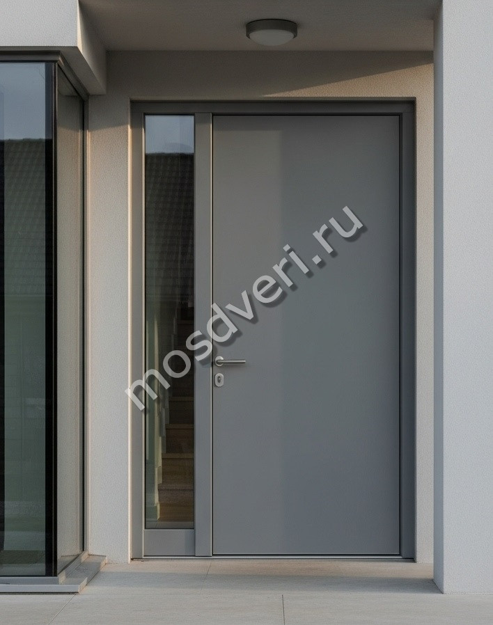 Широкая входная дверь для дома серая — объединяет современный дизайн и высокую надёжность.