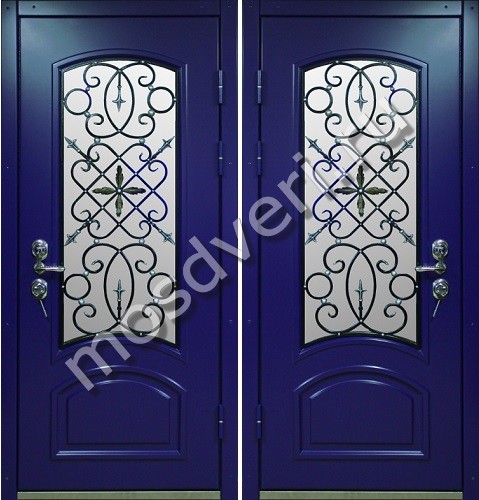 Дверь входная с МДФ панелями, элементами ковки и стеклом — совмещает эстетичность и высокую надёжность.