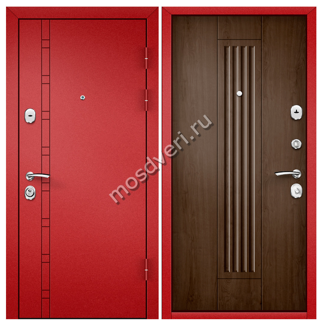 Красная входная дверь в квартиру KVD-10 — совмещает эстетичность и превосходные защитные характеристики.
